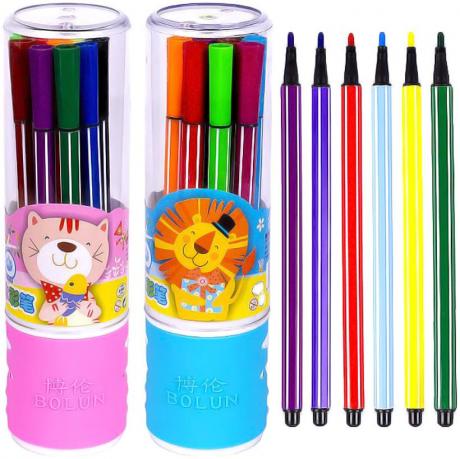 Набір фломастерів із нетоксичних матеріалів в пластиковому тубусі, 12 кольорів, вентильований ковпачок. Вік 3+