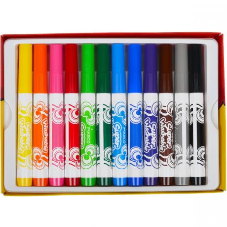 Фломастери MARCO JUMBO, призначені для малювання та розфарбовування, допоможуть вашому малюкові створити неповторні яскраві картинки. Комплект включає в себе фломастери 12 яскравих насичених кольорів в різнокольорових пластикових корпусах (колір корпусу відповідає кольору чорнил) .Наконечнікі фломастерів стійкі до підвищеного тиску і не розношуються згодом. Чорнило не токсичні і абсолютно безпечні, на водній основі, ідеально змиваються з рук і речей. Фломастери упаковані в коробку з европодвесом. Кругле вістрі фломастера 3,5 мм. Розмір фломастера 14,5х1,5см. Вік від 3-х років.