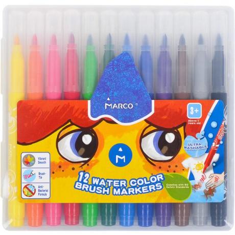 Фломастери MARCO , призначені для малювання та розфарбовування, допоможуть вашому малюкові створити неповторні яскраві картинки. Комплект включає в себе фломастери 12 яскравих насичених кольорів в різнокольорових пластикових корпусах (колір корпусу відповідає кольору чорнил) .Наконечнікі фломастерів стійкі до підвищеного тиску і не розношуються згодом. Чорнило не токсичні і абсолютно безпечні, на водній основі, ідеально змиваються з рук і речей. Фломастери упаковані в коробку з европодвесом. Кругле вістрі фломастера 3,5 мм. Розмір фломастера 14,5х1,5см. Вік від 3-х років.