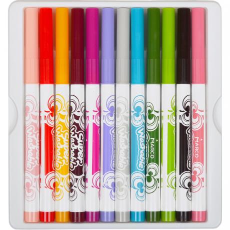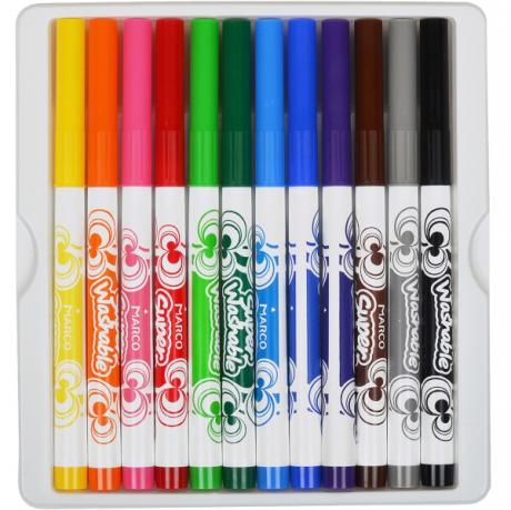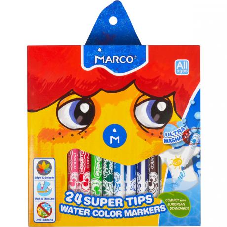 Фломастери MARCO JUMBO, призначені для малювання та розфарбовування, допоможуть вашому малюкові створити неповторні яскраві картинки. Комплект включає в себе фломастери 24 яскравих насичених кольорів в різнокольорових пластикових корпусах (колір корпусу відповідає кольору чорнил) .Наконечнікі фломастерів стійкі до підвищеного тиску і не розношуються згодом. Чорнило не токсичні і абсолютно безпечні, на водній основі, ідеально змиваються з рук і речей. Фломастери упаковані в коробку з европодвесом. Кругле вістрі фломастера 3,5 мм. Розмір фломастера 14,5х1,5см. Вік від 3-х років.