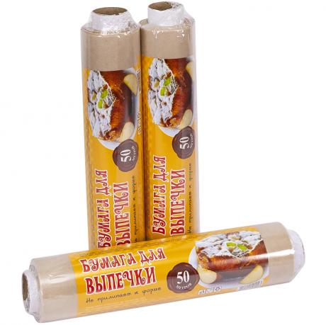 Фактична довжина 35 м. Пергамент 29х50м коричневий. Пергаментний папір - особливий вид щільної паперу, не пропускає вологи і жирів. Пергамент для випічки - це спеціальний папір для випікання кондитерських виробів в газових або електричних духових шафах при температурі до 220 градусів Цельсія. Використання пергаментного паперу при випіканні гарантує сучасній господині ароматну випічку. За допомогою пергаментного паперу можна легко відокремити випічку від форми. Крім того її використовують як упаковку для техніки і використовують у фармакології.