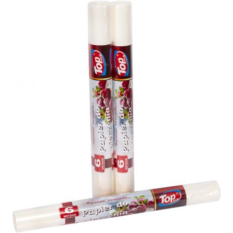 Пергамент 38х6м Top Pack силікон, білий. Пергамент силіконізірованний має спеціальне силіконове покриття, яке дозволяє використовувати пергамент не тільки для випічки, але і практично для будь-якого іншого способу приготування їжі. Завдяки унікальним властивостям пергаменту виключається прилипання продуктів до форми і поліпшуються смак і зовнішній вигляд випічки. Зроблено з натуральної рослинної сировини високої очищення і двостороннім силіконовим покриттям. Відрізняється від інших видів пергаменту високим ступенем вологостійкості і жароміцних. Дозволено використання при температурі понад 220 °С