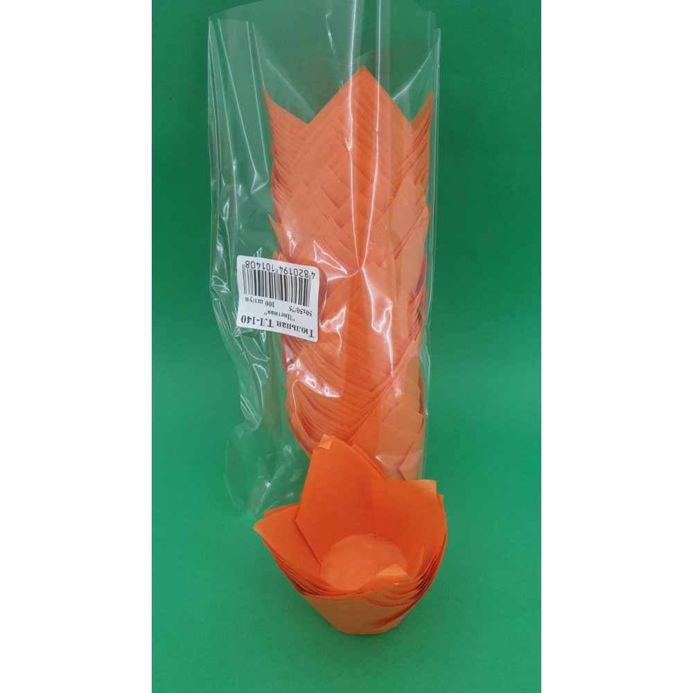 Тарталетки бумажные для кексов ТЛ-140"Тюльпан Оранжевый" (50*50/75) (100шт) (1 уп.)