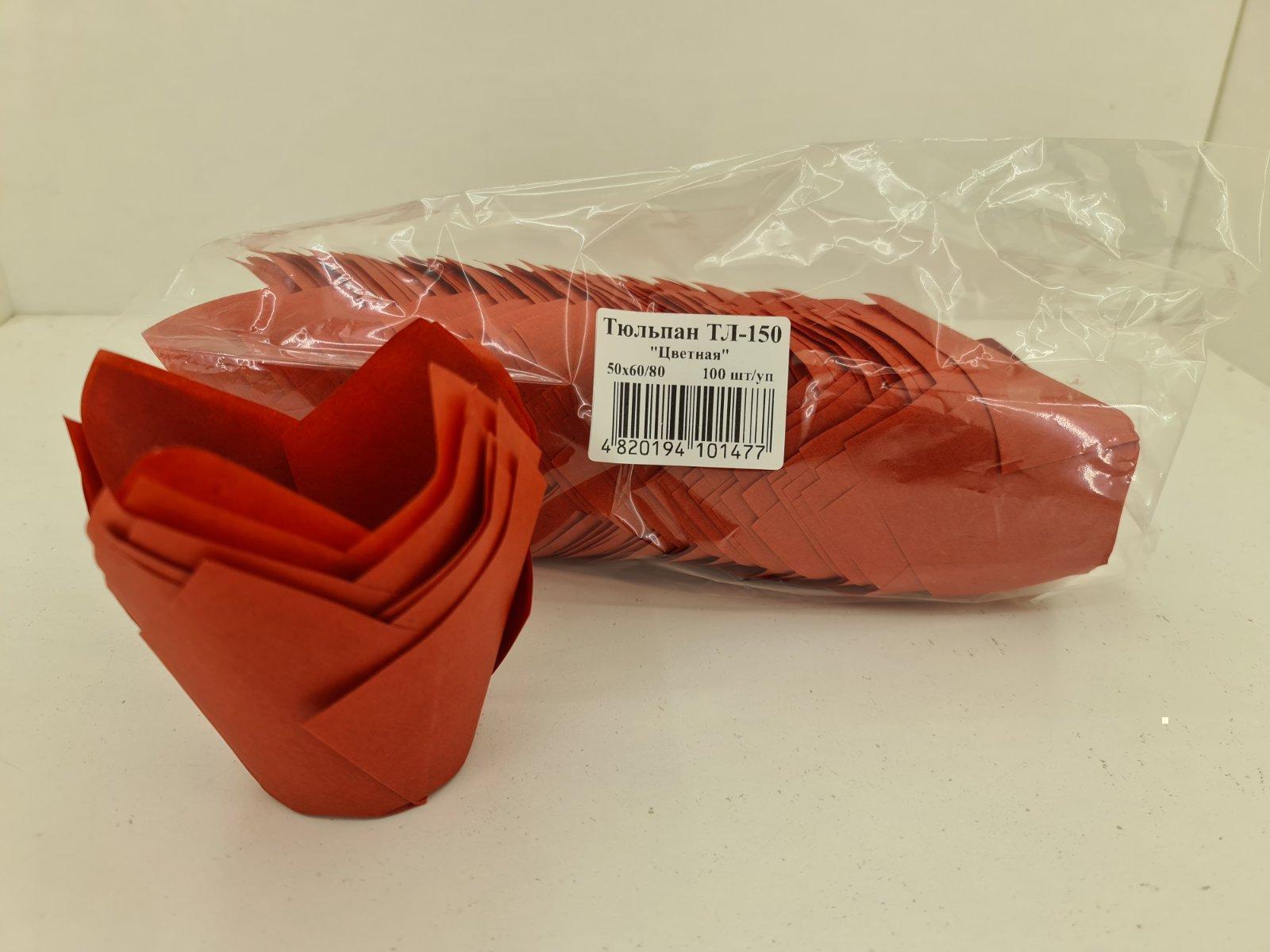 Тарталетки бумажные для кексов ТЛ-150"Тюльпан Красный" (50*60/80) (100шт) (1 уп.)