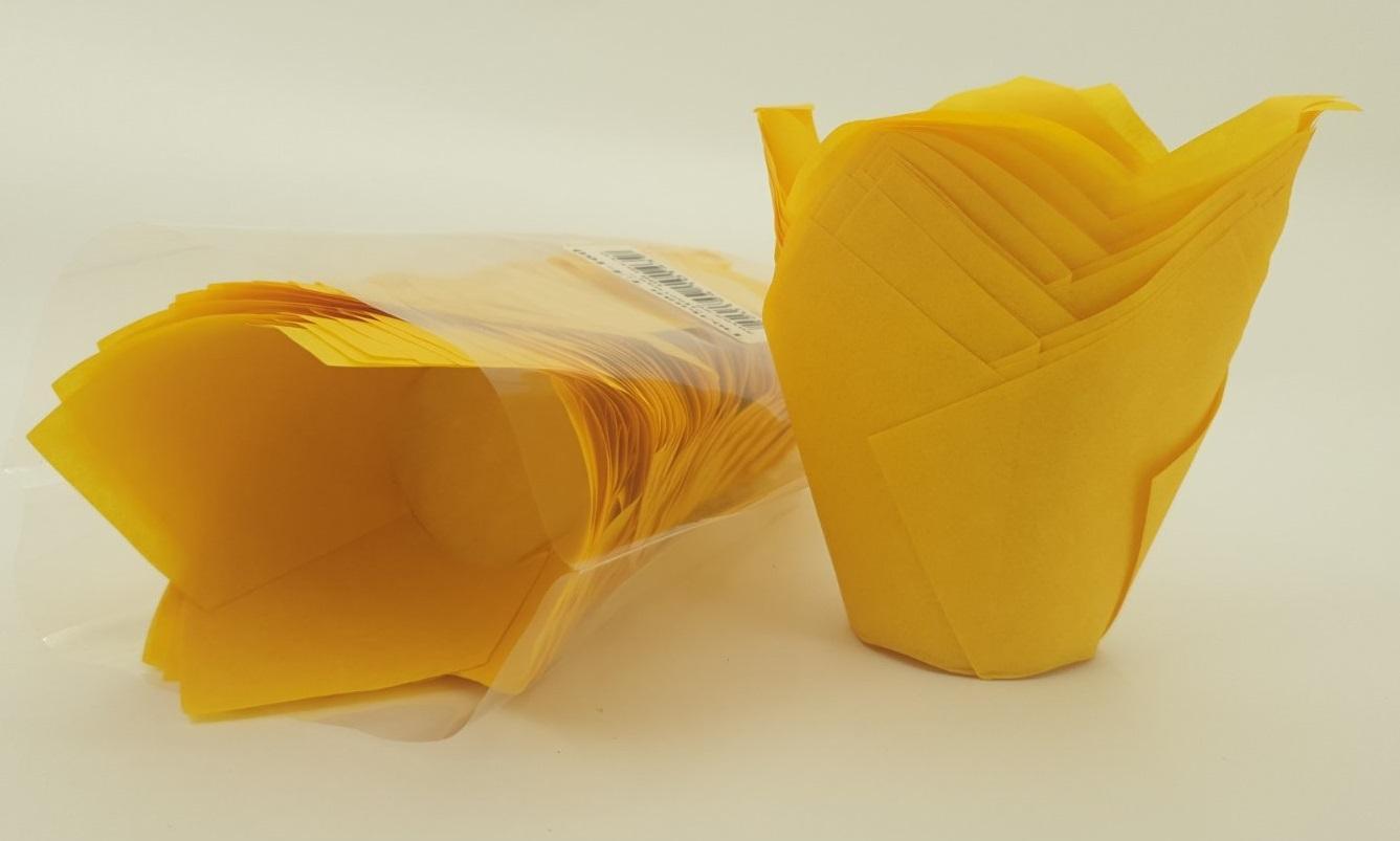 Тартолетка для кексов"Тюльпан Желтый" (50*65/90) (100шт)/ТЛ-160/ (1 уп.)