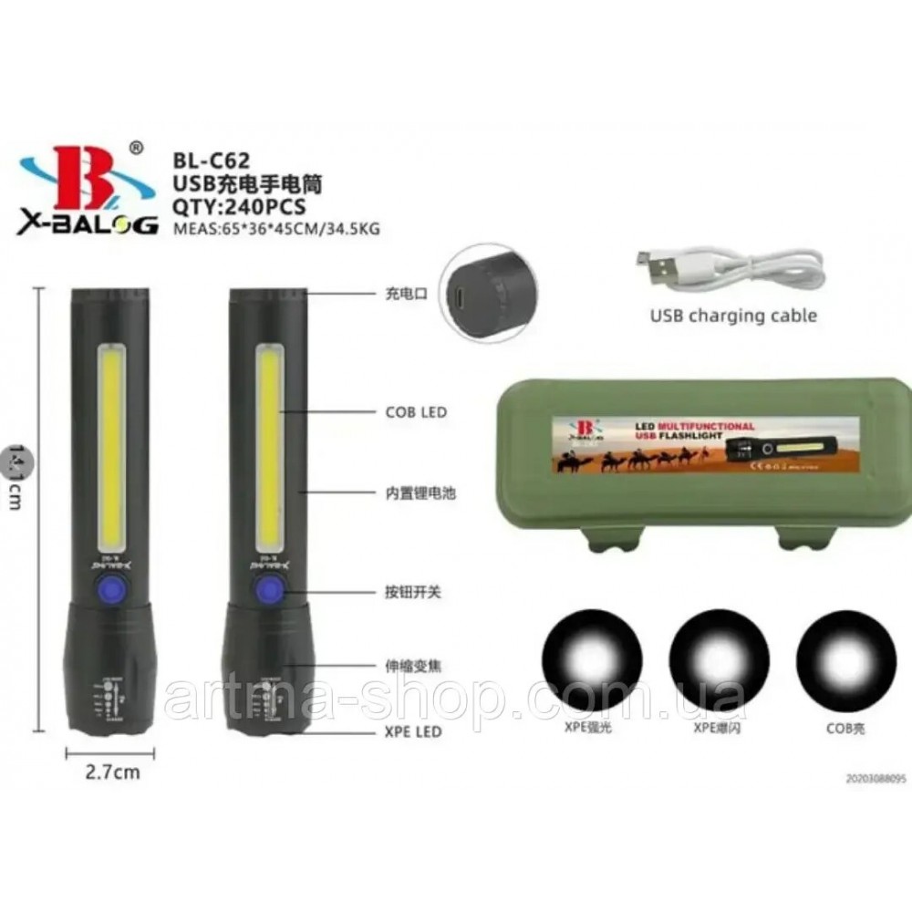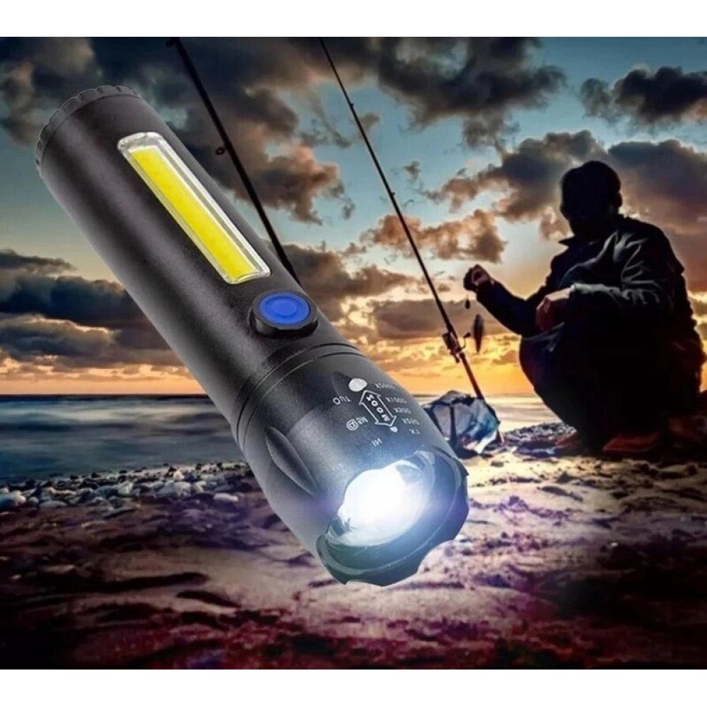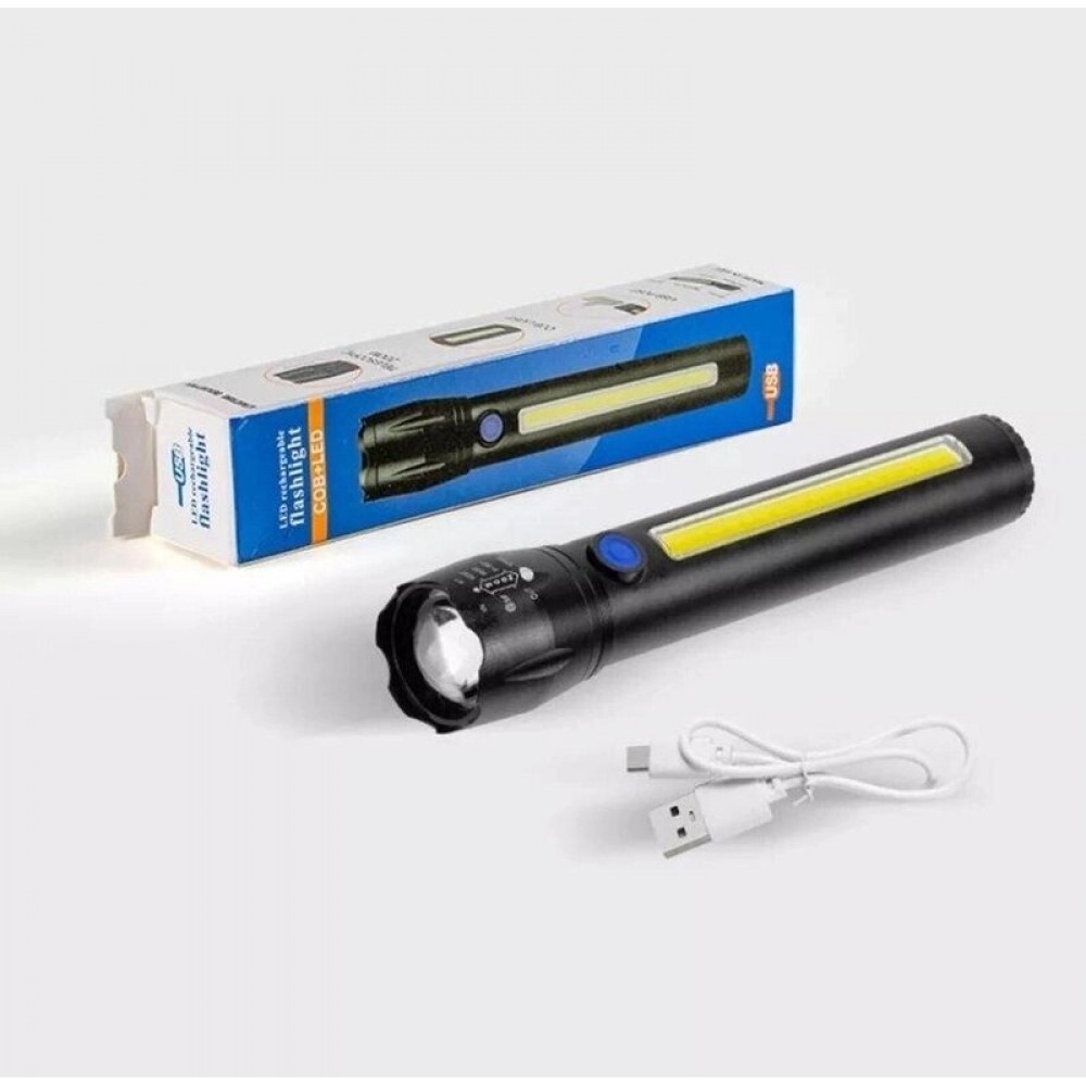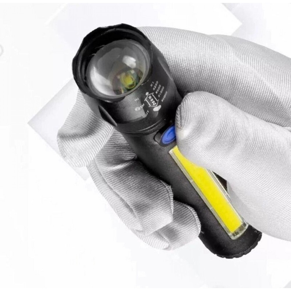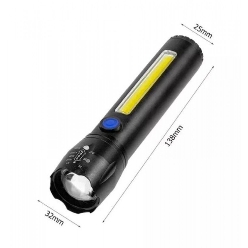 Фонарь T60-3W+COB, Li-Ion аккум., индикация заряда, крюк, ЗУ Type-C, Box