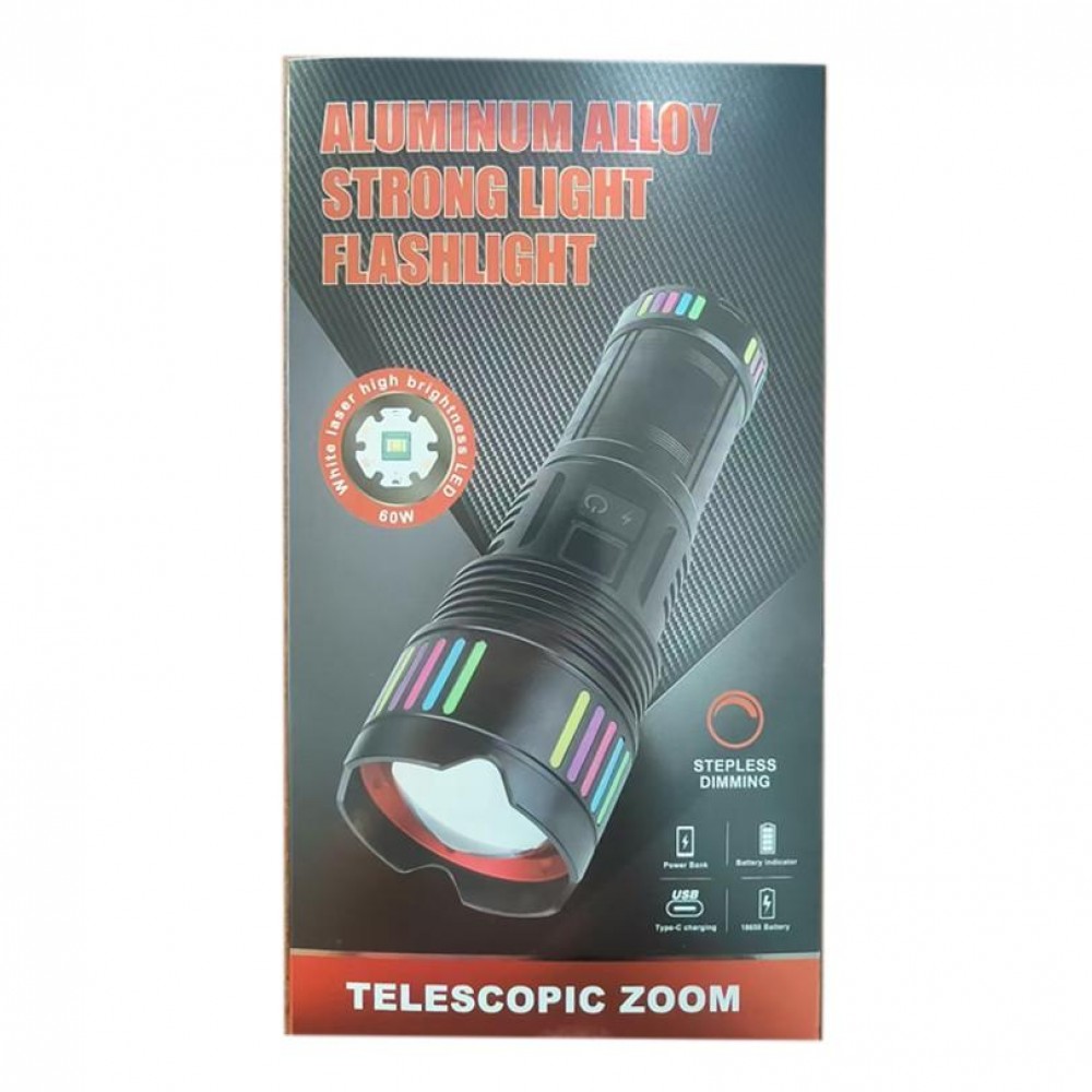 Фонарь NIGHT VISION FLUORESCENCE C203-1 WHITE LASER LED GT-50W, 4x18650, power bank, ЗУ Type-C, zoom