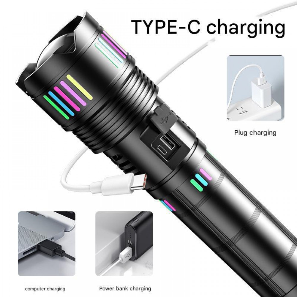 Фонарь NIGHT VISION FLUORESCENCE C203 WHITE LASER LED GT-50W, 8x18650, power bank, ЗУ Type-C, zoom