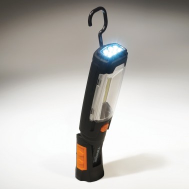 Удобная лампа для мастерской с мощной светодиодной лампой 3 Вт COB излучает холодный свет, идеально освещающий уголки и закоулки под капотом автомобиля. Оснащенный полностью вращающимся крюком, его можно повесить в любом месте, что облегчает выполнение точных действий. Благодаря набору из 6 дополнительных светодиодных ламп он работает как фонарик с длинным и пучком света, эффективно освещая далекую тьму. Питание от аккумулятора емкостью 2000 мАч, полностью заряженного за 6 часов, гарантирует длительное время работы в любом из режимов освещения. В комплекте с адаптером питания и автомобильным зарядным устройством можно заряжать как дома, так и в кемпинге без доступа к электричеству.
