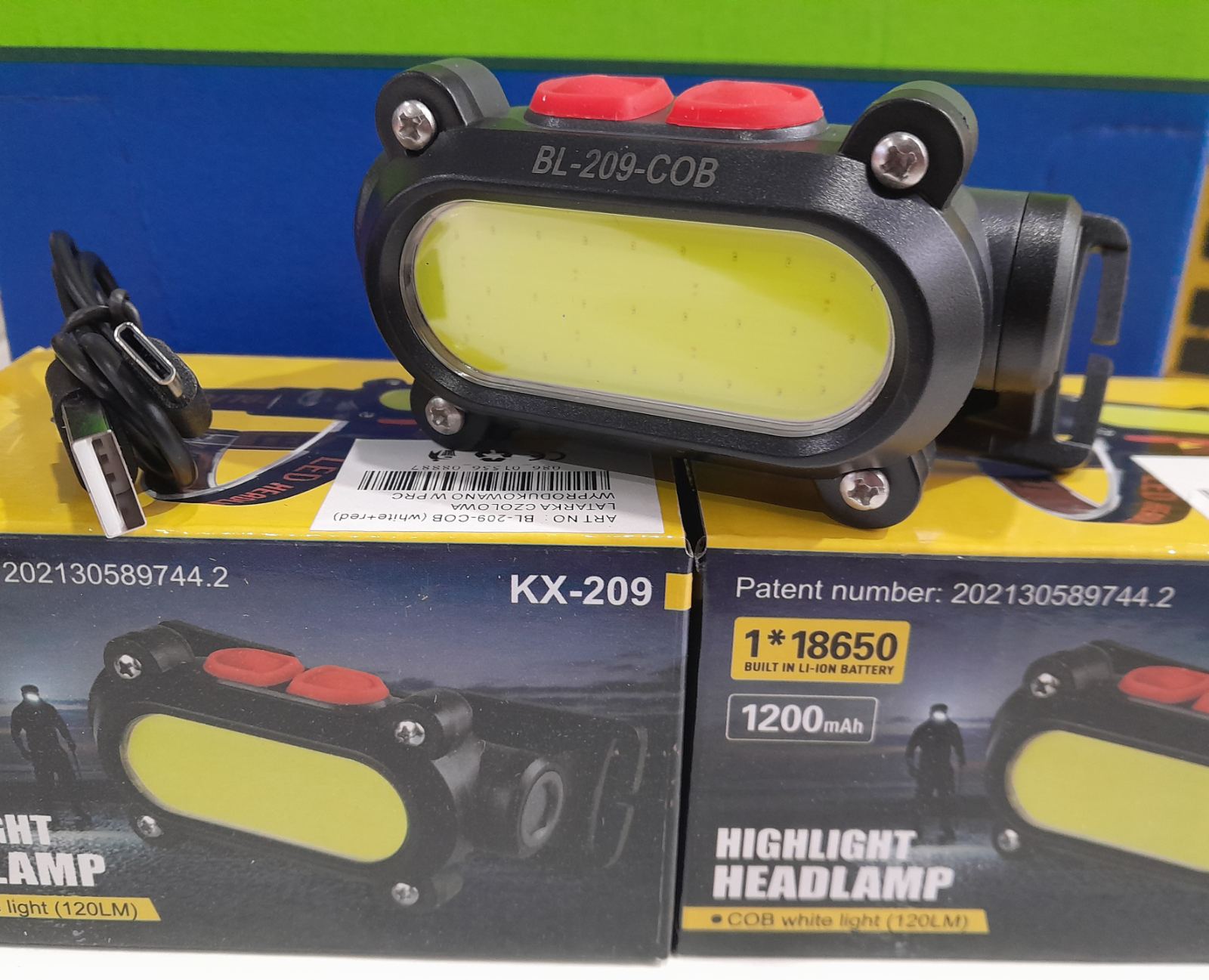 Фонарь налобный КХ-209( отдельно кнопка на красный свет, аккумуляторный)