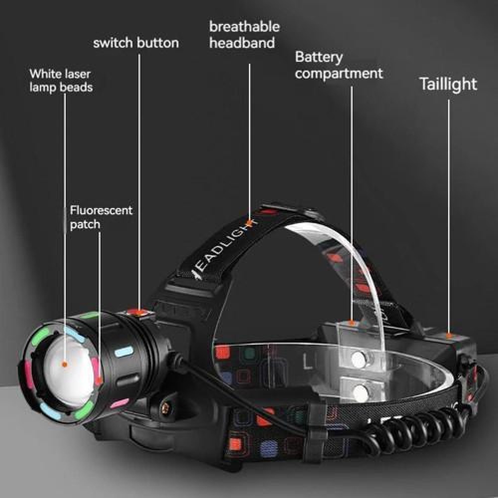 Фонарь налобный NIGHT VISION FLUORESCENCE 8083 1 РЕЖИМ WHITE LASER LED PM10-TG+COB, 2x18650, ЗУ Type-C, zoom