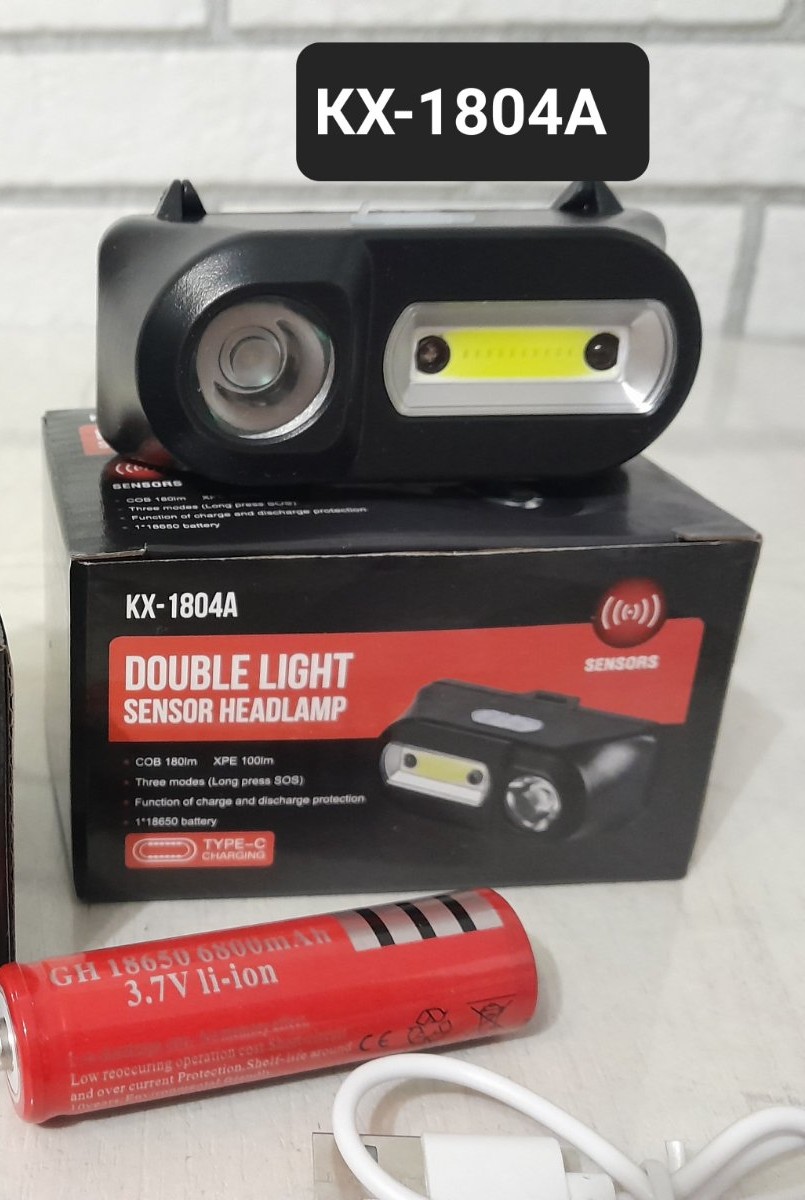 Фонарь налобный с сменным аккумулятором КХ-1804А(с датчиком движения на включение)