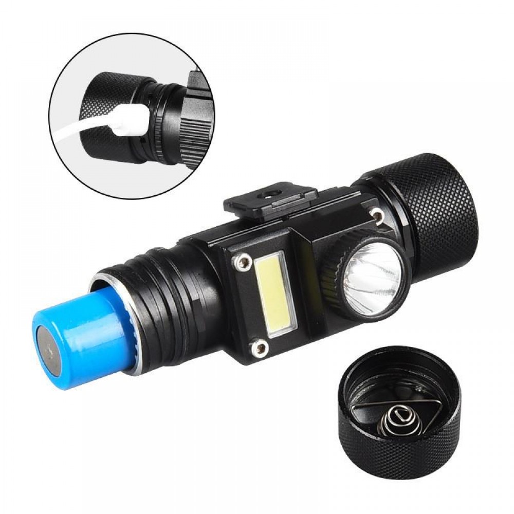 Фонарь налобный XQ-210-2-XPE+COB, 1x18650, ЗУ microUSB