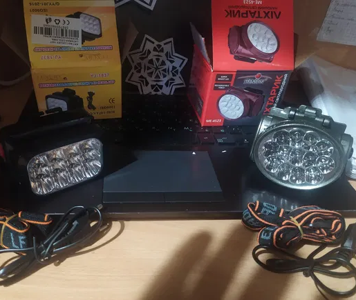 Фонарь налобный 622-TG 15W, Li-Ion аккумулятор, ЗУ Type-C, желтый фильтр, zoom, Box