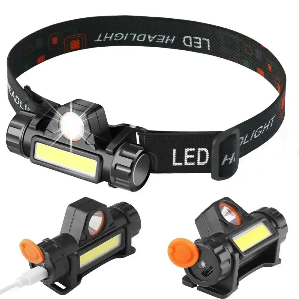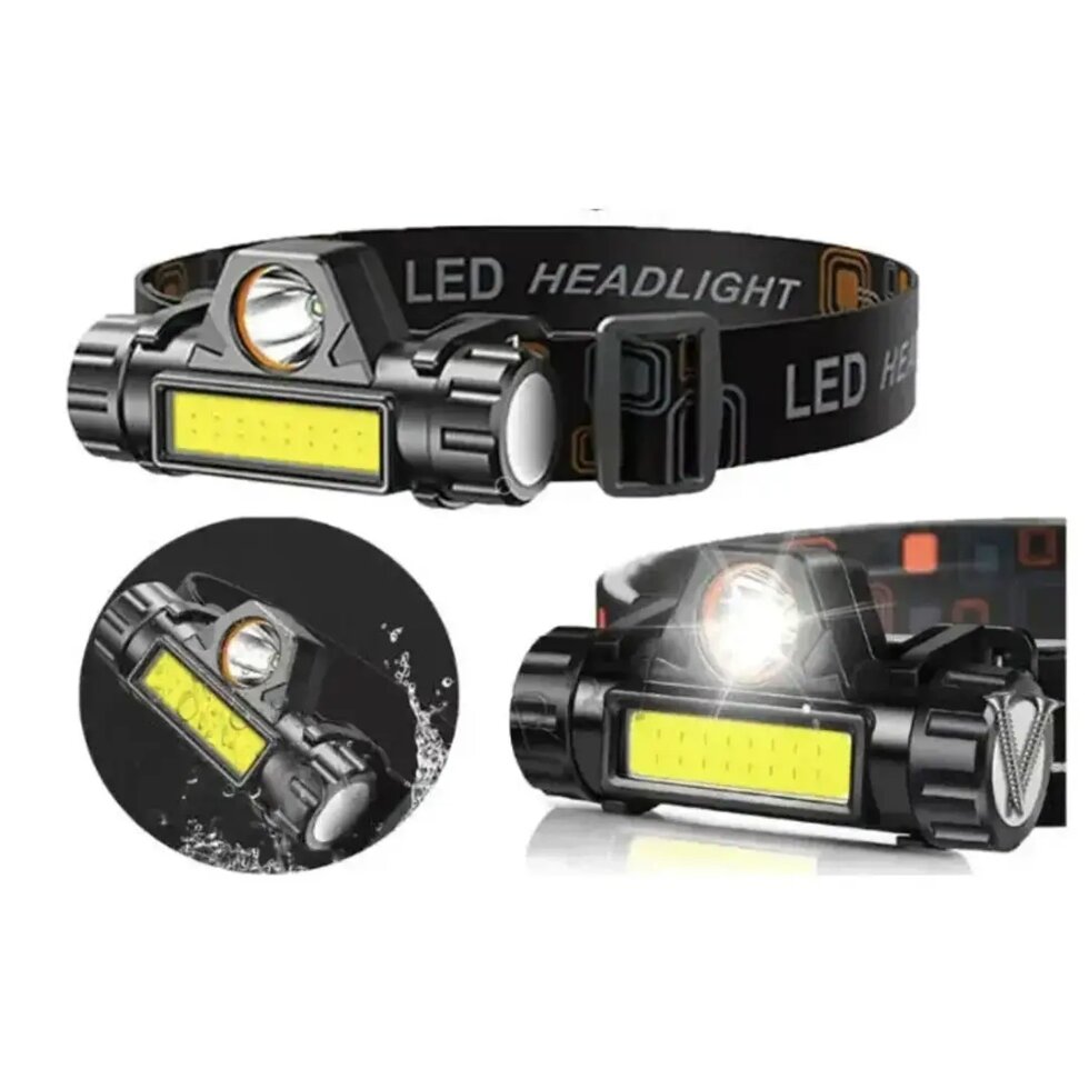 ФОНАРЬ HEADLIGHT НАЛОБНЫЙ ГОЛОВНОЙ СВЕТОДИОДНЫЙ АККУМУЛЯТОРНЫЙ, ДИОД 1W+COB, 2 РЕЖИМА, МАГНИТ, MICROUSB.