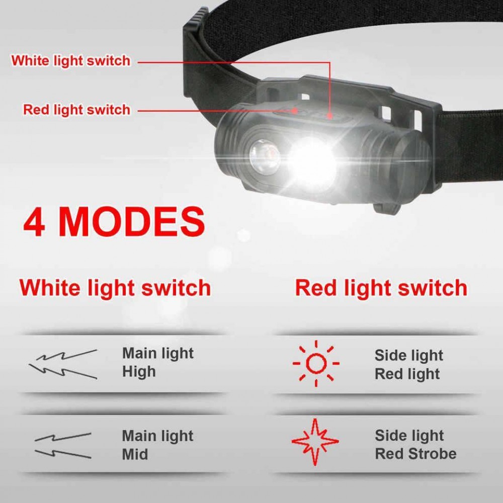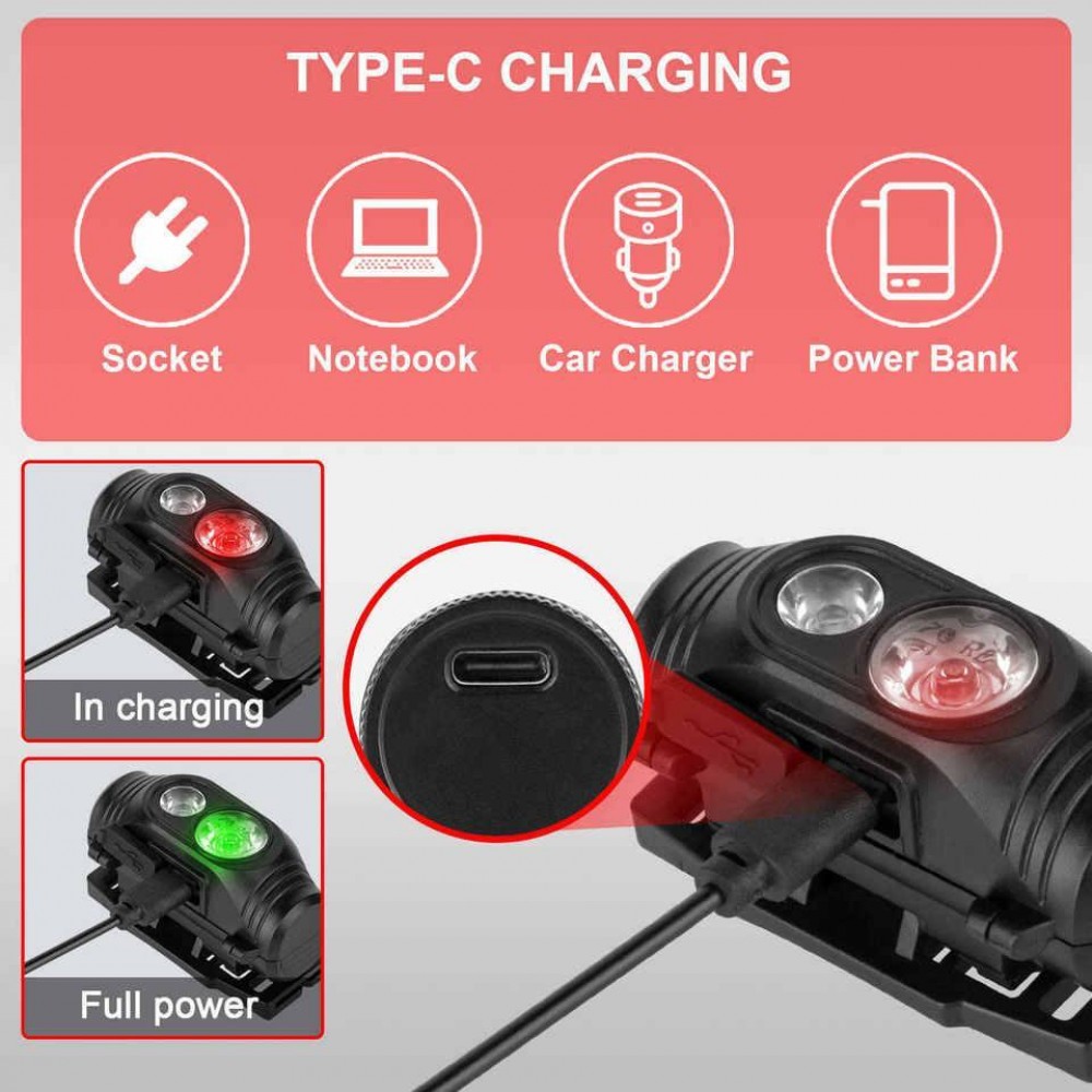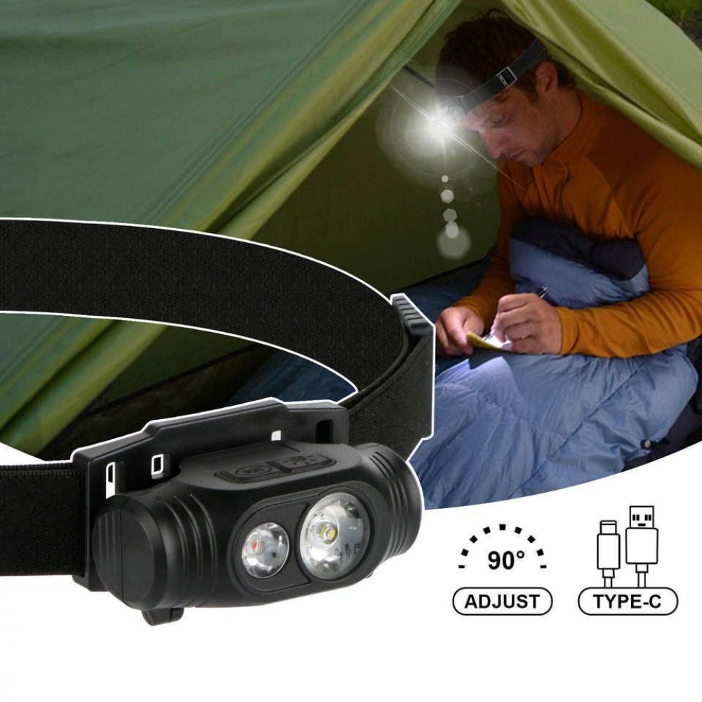 Фонарь налобный 6670-COB(White)+SMD(Red), ЗУ Type-C, 1x14500, Box