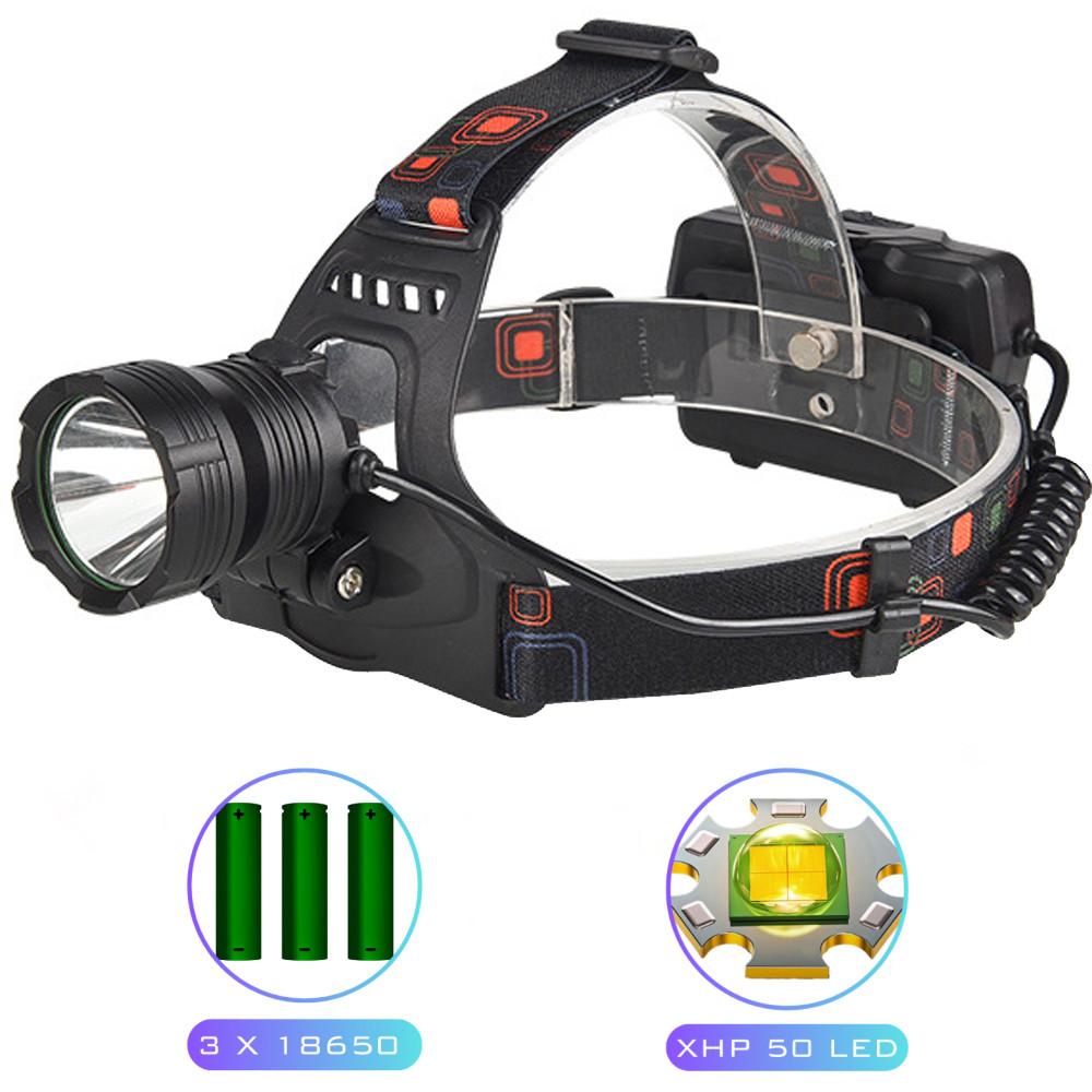 Фонарь налобный XQ-218-HP50, Power Bank, 3x18650, signal light, индикация заряда, ЗУ microUSB, Box