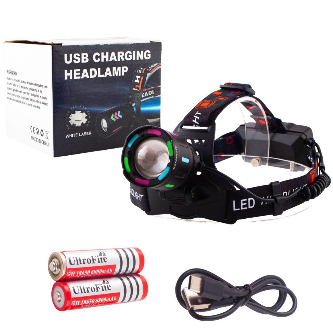 Фонарь налобный NIGHT VISION FLUORESCENCE SY-8087 1 РЕЖИМ PM10-TG, 2x18650, signal light, ЗУ Type-C, zoom, Box