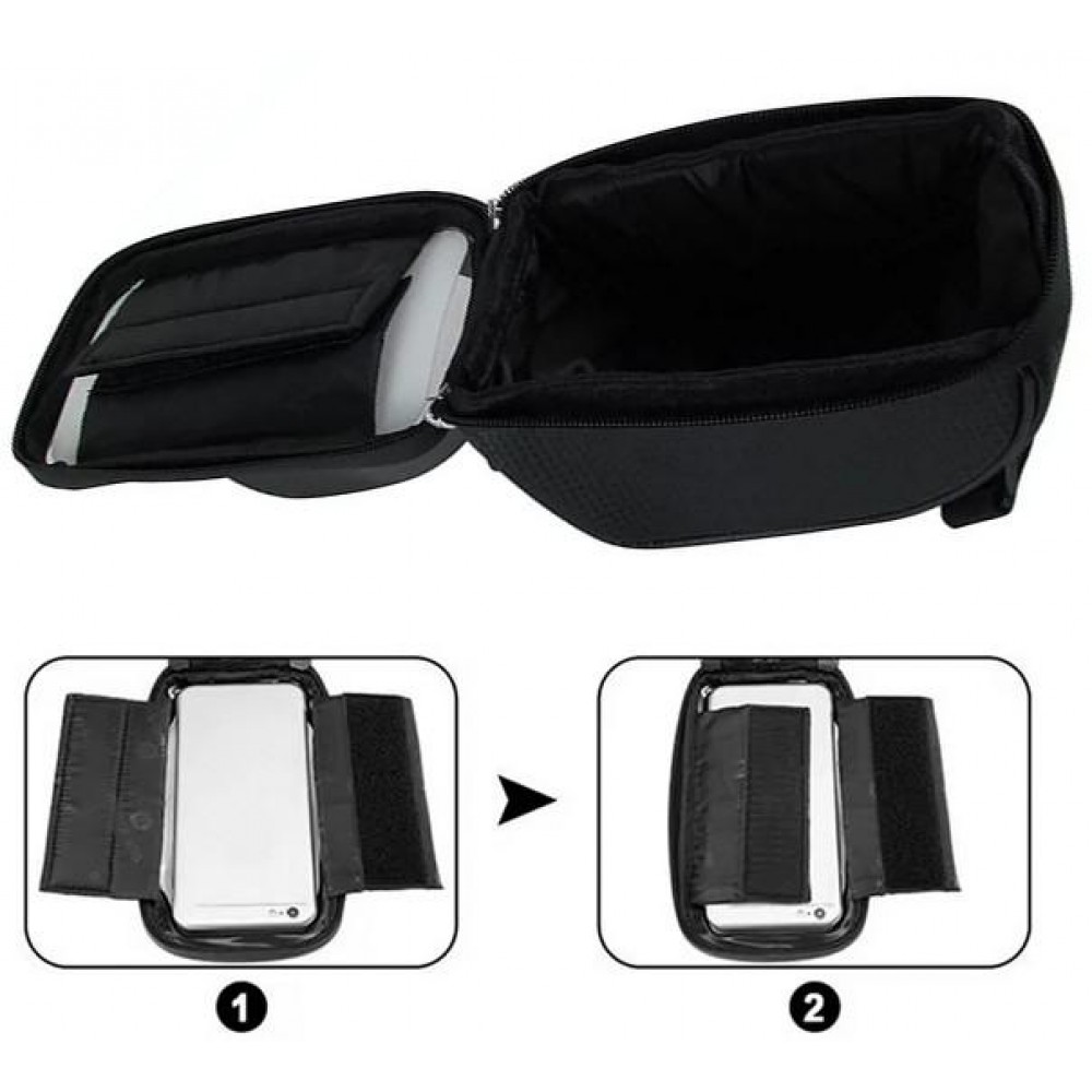 | Дополнительные характеристики, | для телефонов размером до 6,5 дюймов, водонепроницаемая ткань, сверху прозрачное силиконовое окно (чувствительная сенсорная пленка) и козырек от солнца, крепление на ремнях с липучками, небольшой бардачек для хранения мелких вещей |