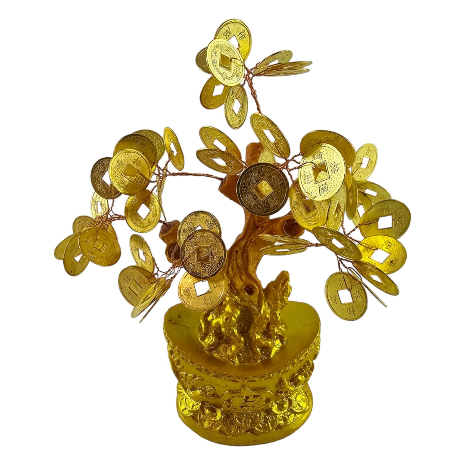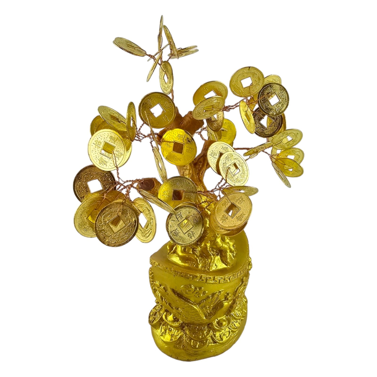 Денежное дерево в чаше богатства - это не только стильный аксессуар, но и мощный амулет, привлекающий благополучие и процветание. Золотистые китайские монетки, расположенные на ветвях дерева, символизируют непрерывный поток благосостояния и финансового успеха.