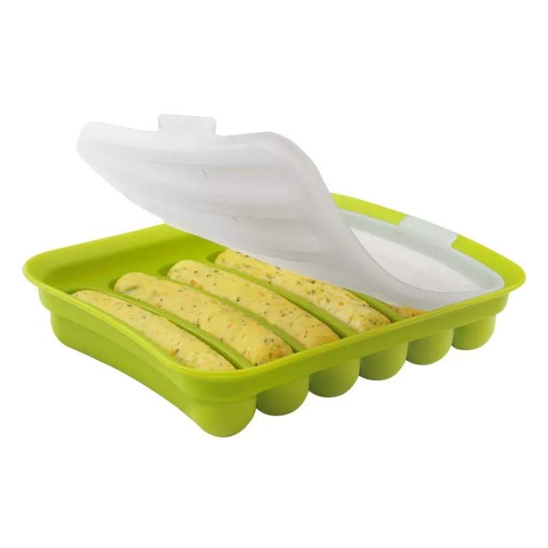 Приготовьте домашние сосиски из ваших проверенных продуктов для своих близких. В данной форме вы можете готовить как в духовке так и на пару здоровую еду. Благодаря крышке с отверстиями для пара все содержимое приготовиться равномерно и на 100%