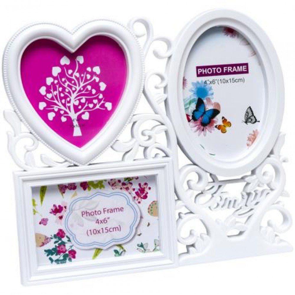 Фоторамка-колаж біла на 3 фотографії. Мультирамка є однією з головних складових будь-якого інтер'єру. Призначена вона для того, щоб прикрасити позитивом і приємними спогадами кімнату. Матеріал: пластик. Розмір: 31*28*2см