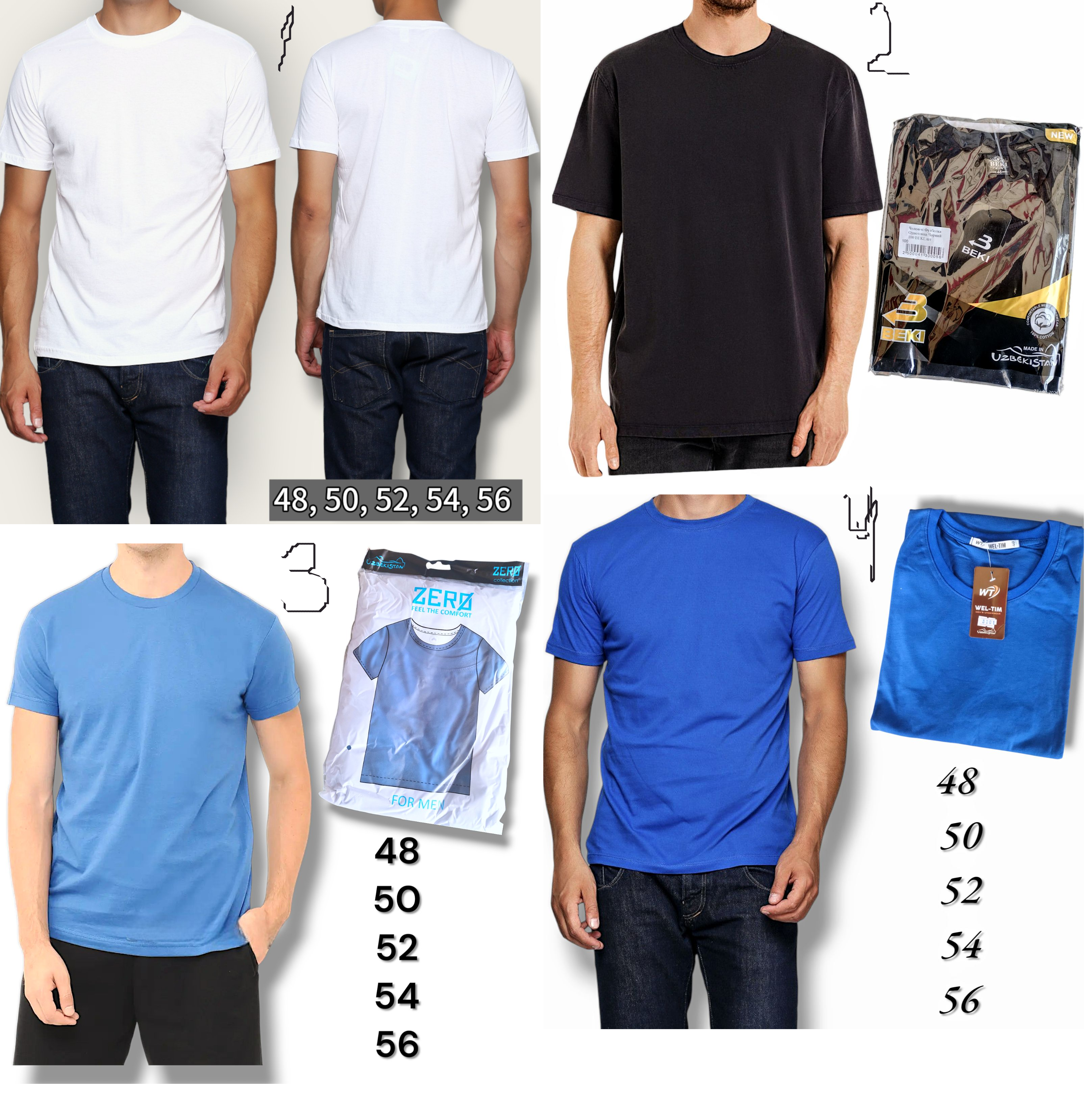 Футболка чоловіча однотонна. Виробник Узбекистан. Норма. Розміри: 48, 50, 52, 54, 56.