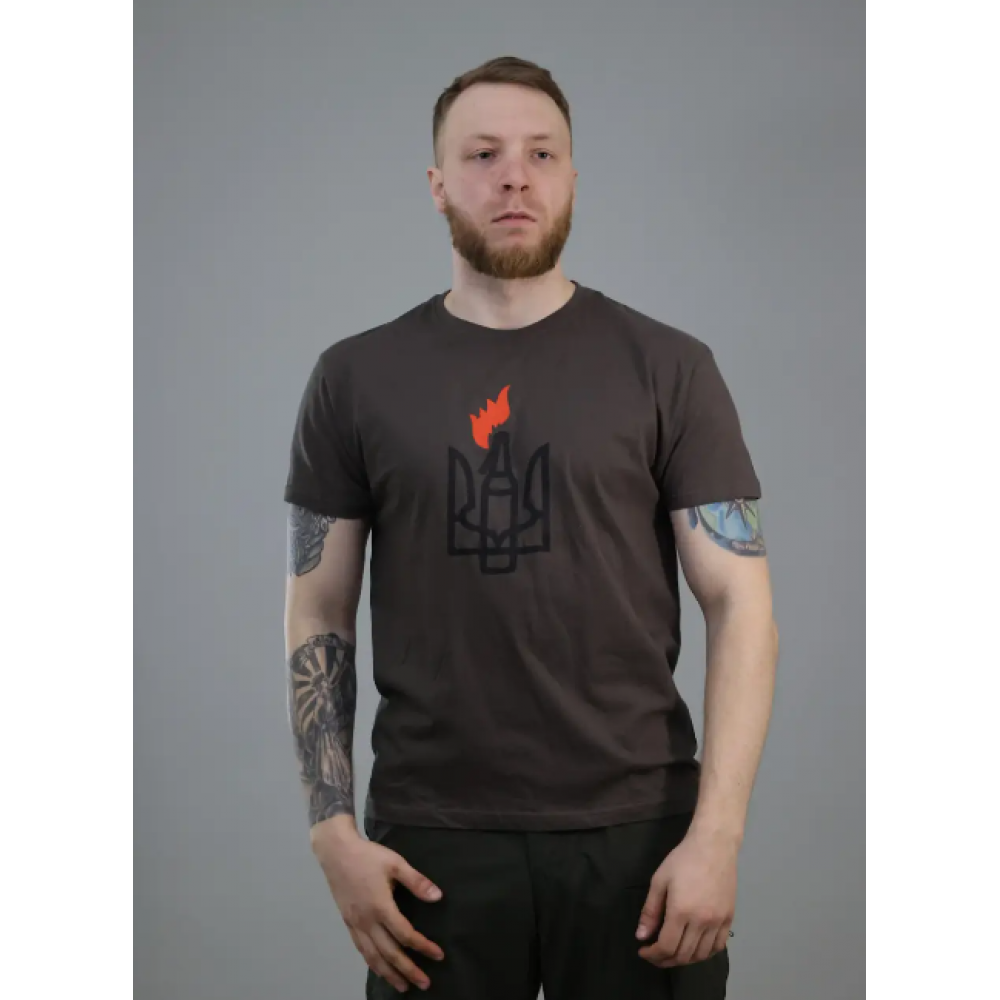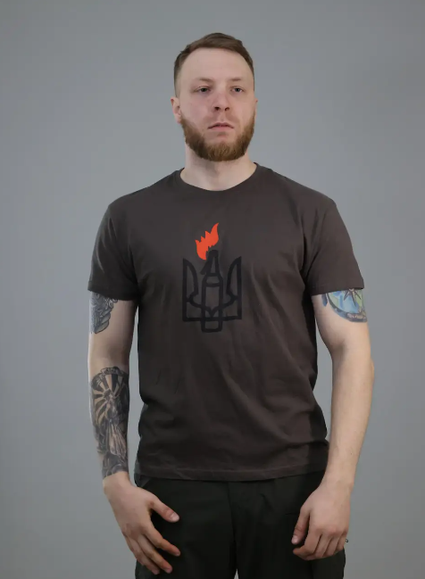 На груди расположен принт, стилизированый под герб "Тризуб", с помощью которого вы можете подчеркнуть свою патриотичность и веру в свою страну