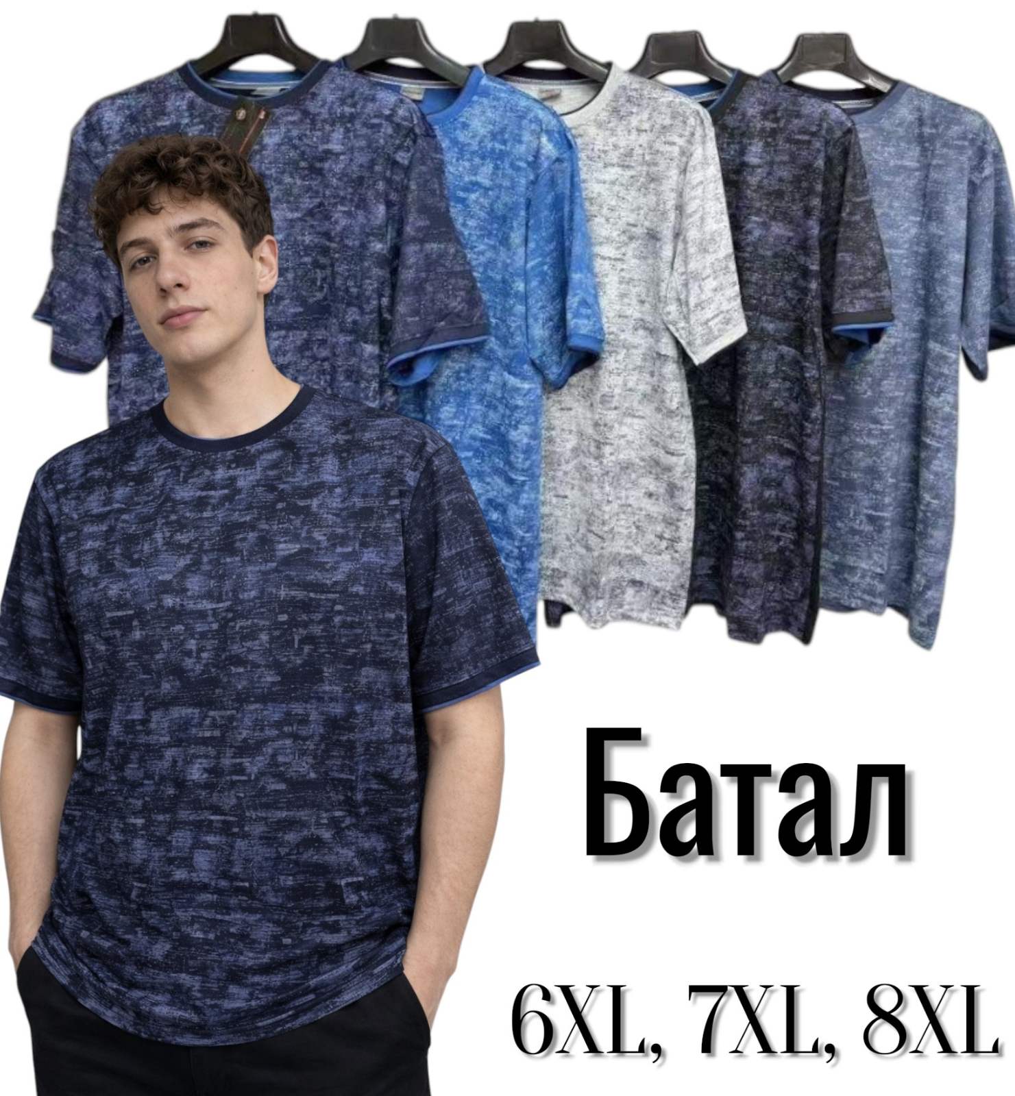Мужская футболка трикотажная. Батал. Размеры: 6XL, 7XL, 8XL, В упаковке 5 штук разного цвета