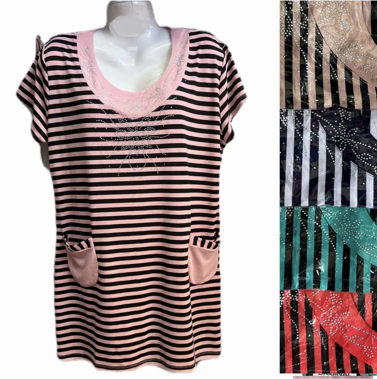Футболка со стразами 27059. Размер M, L, XL . Ткань 95% катон,5%спандекс