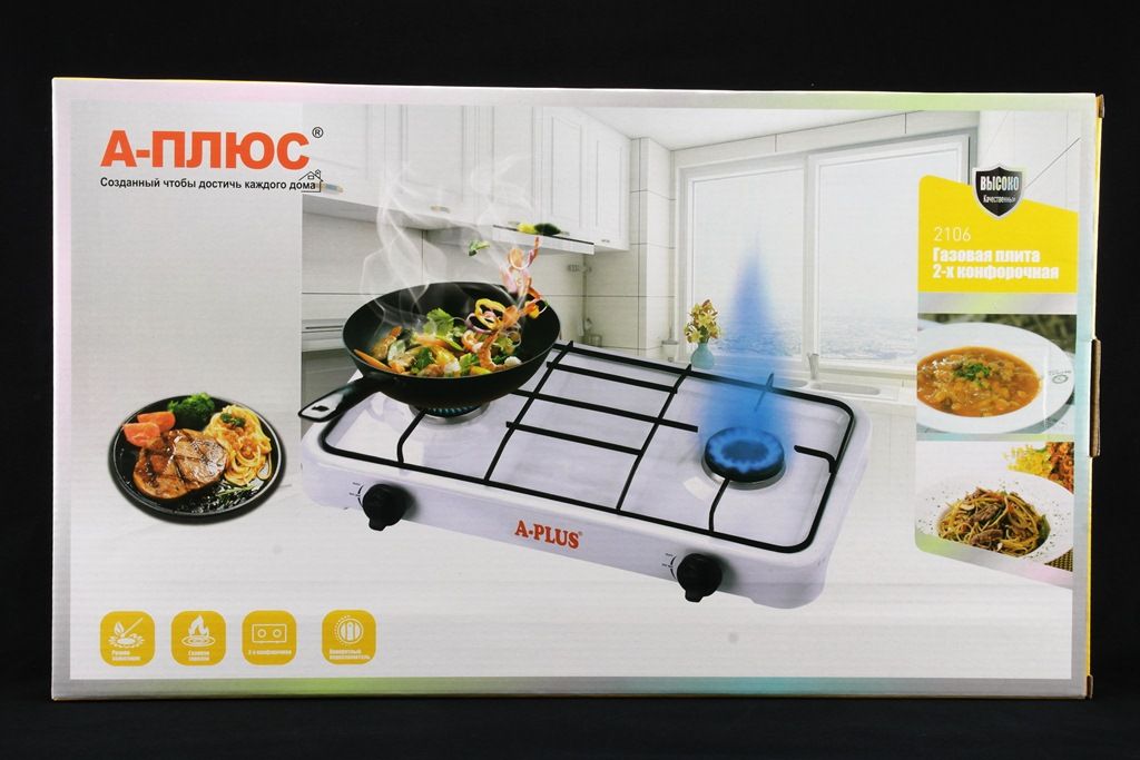 Газовая плита А-Плюс идеальный вариант для приготовления пищи в бытовых условиях. Особенно оценят плиту любители домашней еды. Плита имеет две конфорки и две ручки управления. Так как модель довольно легкая и компактная, вы без труда сможете ее брать с собой на дачу, использовать в летней кухне, в беседке, в квартире и не только. В качестве источника питания выступает газовый баллон сжиженным газом