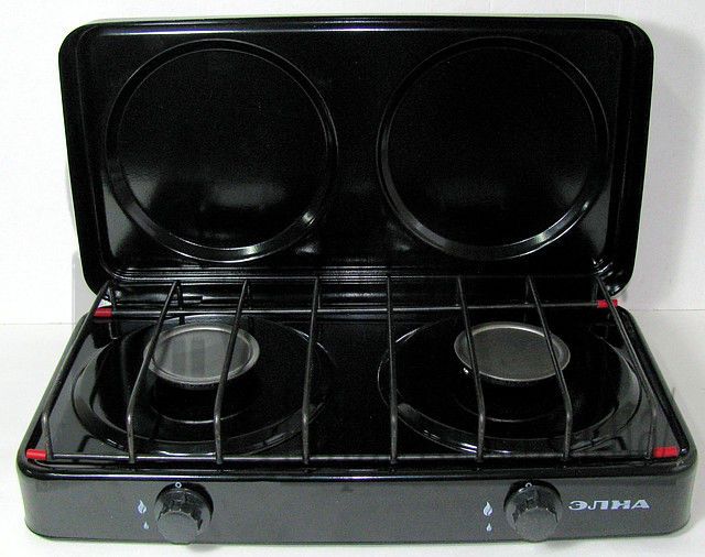 Плита газовая двухгорелочная бытовая Элна, c крышкой. Возможно использовать с пропановым баллоном, через редуктор, а также от природного газа.