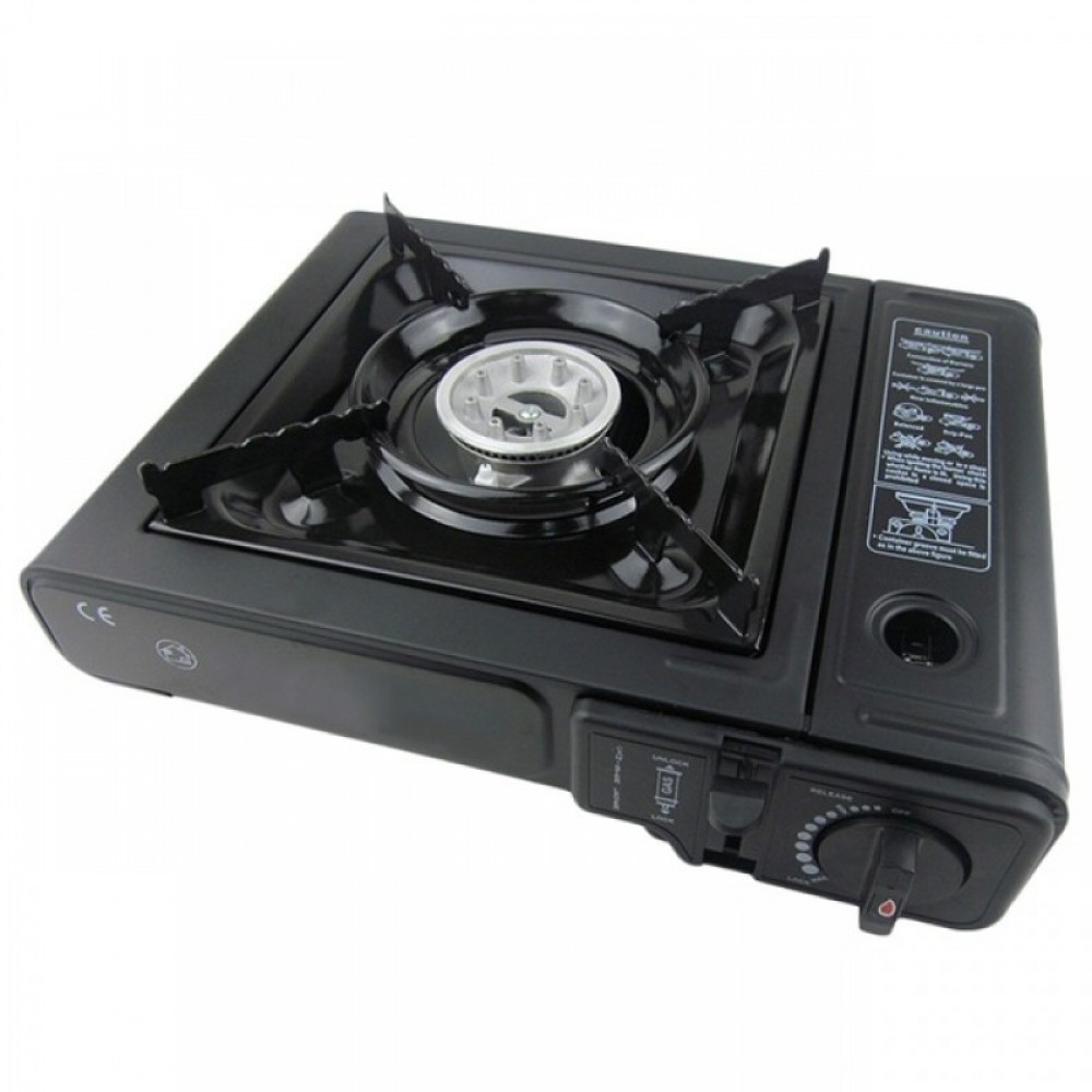 Газовая плита с ВЕТРОЗАЩИТНОЙ ПАНЕЛЬЮ под цанговый баллон и переходником (адаптером) для подключения бытовых баллонов. Классическая модель одноконфорочной портативной плитки. Благодаря удобству использования и демократичной цене, она является самой популярной моделью. Многие люди, столкнувшиеся с отключением электричества, и те, кто просто любит путешествовать с комфортом, всегда имеют у себя на даче или в машине портативную плитку и запас газовых баллонов. Плита надежна, неприхотлива и предельно проста в использовании. Имеет автоматический пьезоподжиг. Работает от цангового газового баллона 220 грамм, который помещается внутри плиты и комплектуется переходником для подключения бытовых баллонов. При работе от бытового баллона используется редуктор с механической (ручной) регулировкой