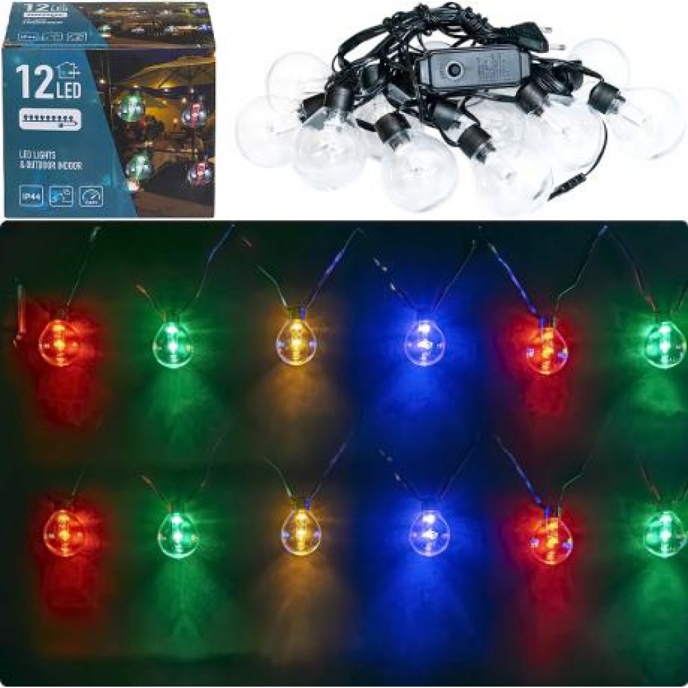 АКЦІЯ! Гірлянда електрична Ретро Лампочка 12шт мультиколір LED кругла 4м RJ-18
