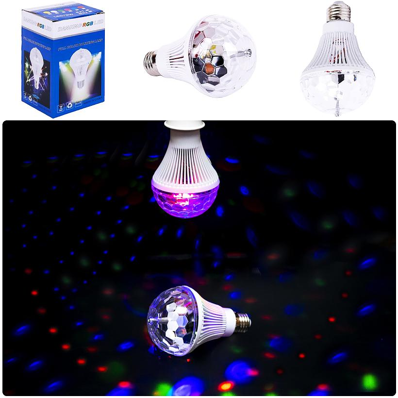 Лампа світлодіодна, світиться різноколірними вогнями , прекрасне рішення для домашніх вечірок. Мерехтливе світіння перетворить будь-який інтер'єр, створить незвичайну веселу атмосферу. Відмінне придбання для свят, веселих домашніх вечірок, загадкових дружніх посиденьок або просто романтичних вечорів. Споживана енергія: 1w. Напруга живлення : 85-265В/50-60 Гц. Служить до 20000 годин. Тип цоколя E27 легко укручується в звичайний патрон. У комплекті: 1 лампа, що обертається, з пластиковою сферою. Розмір з патроном: высота15см, діаметр 10см