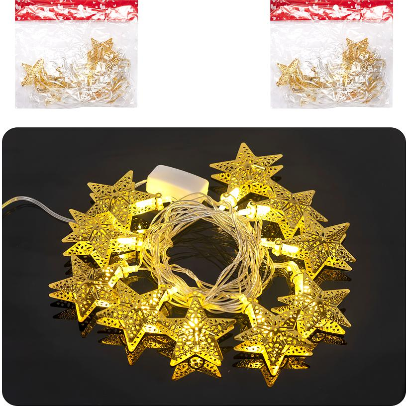 Светодиодная Гирлянда Нить на Медной Проволоке Капля Росы Звезды 20 Led 2м на Батарейках, Теплый Белый