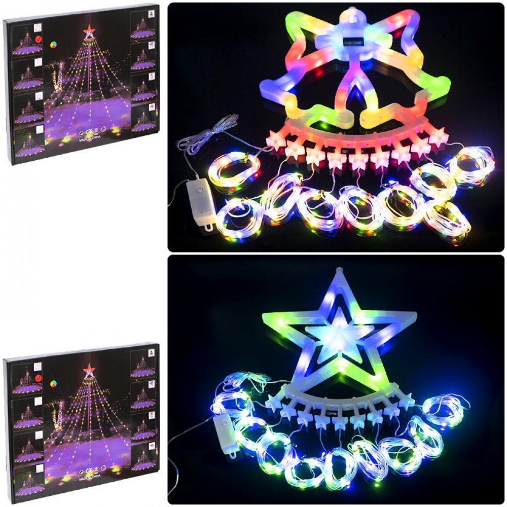 Електрогірлянда зі світлодіодами – це незабутнє декоративно-світлове освітлення до будь-якого свята! Різнокольорове ніжне сяйво гірлянди створить свято у будь-якому будинку та у будь-якому куточку… За допомогою мініконтролера можна вибирати режими свічення, створюючи різні світлові ефекти. Мініконтролер - 8 програм (постійне світіння та повільна та швидка зміна світіння різних кольорів). Колір світіння ламп - мульти (червоний, зелений, синій, жовтий). Колір дроту – прозорий. Харчування – 220V. Для використання усередині приміщень. Довжина: нитки 3метри, розмір верхівки 32*30см