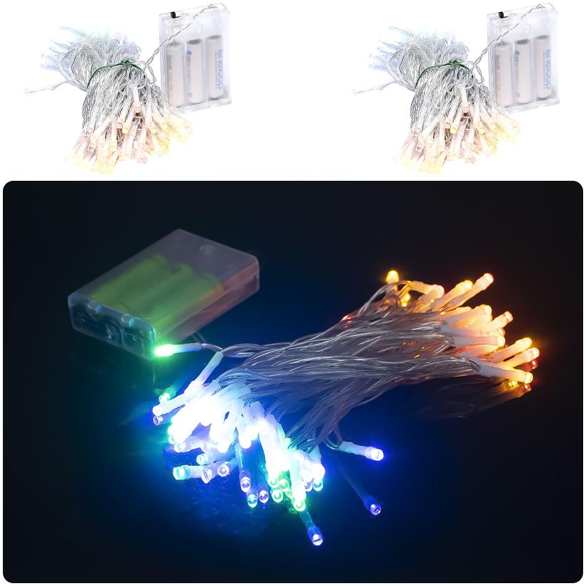 Яскрава електрогірлянда з різнокольоровими мікролампочками ідеально підійде для прикраси новорічної ялинки, інтер'єру чи вікон. Гірлянда LED живлення від 3-х батарейок АА (у комплект не входять). Режим свічення: мультиколір постійне свічення. Довжина 6м