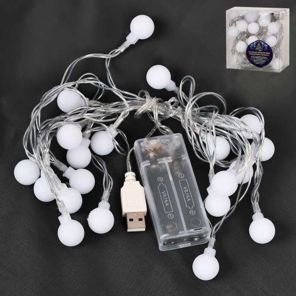 Гирлянда электрическая "Шар цветной жемчужный" 8 шт D9см теплый белый 9280-2