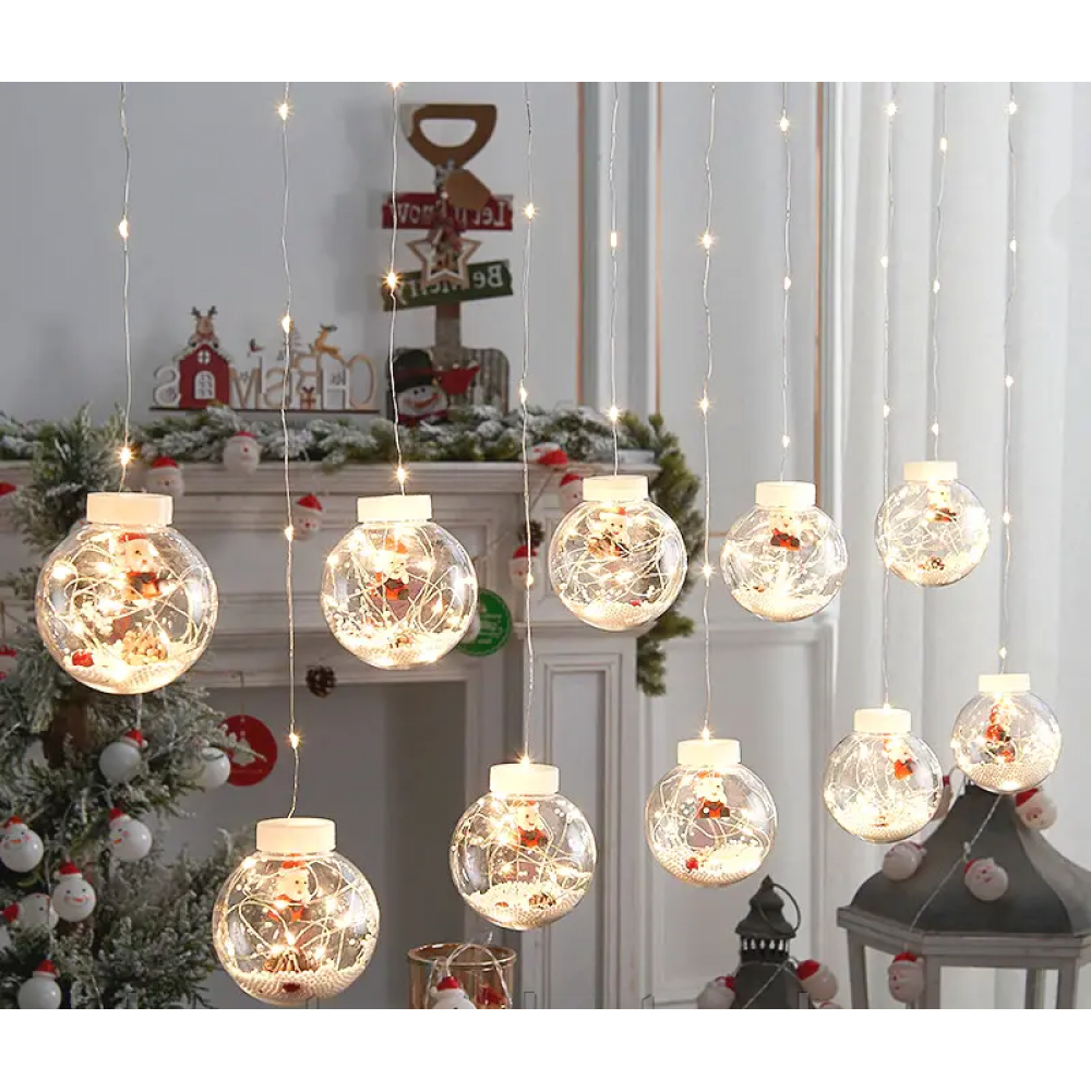 Новогодняя Гирлянда Штора Шары с Наполнением 10 шт, USB+батарейка (O-17A)