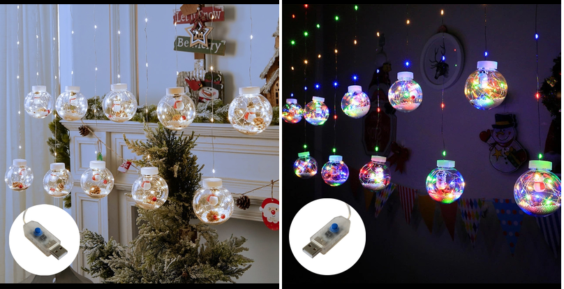 Новогодняя Гирлянда Штора Шары с Наполнением 10 шт, USB+батарейка (O-17A)