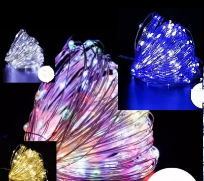 Світлодіодна стрічка крапельки – найдрібніші світлодіоди у вигляді крихітних слізок ― крапельок розташовані на найтоншій дротику, створюють ефект мерехтливих в повітрі сніжинок або ширяють чарівних новорічних світлячків. Живлення від мережі.