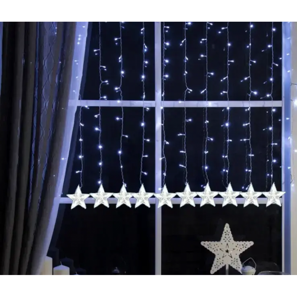 Новогодняя светодиодная Гирлянда Штора Звездочки 120 Led, 3 х 0,8 м (Холодный Белый, Теплый Белый)