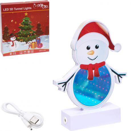 Світлодіодний 3D тунельний нічник Сніговик. Працює від мережі 220V або від 3-х батарейок ААА(не помплектується) Розмір 20*19см.