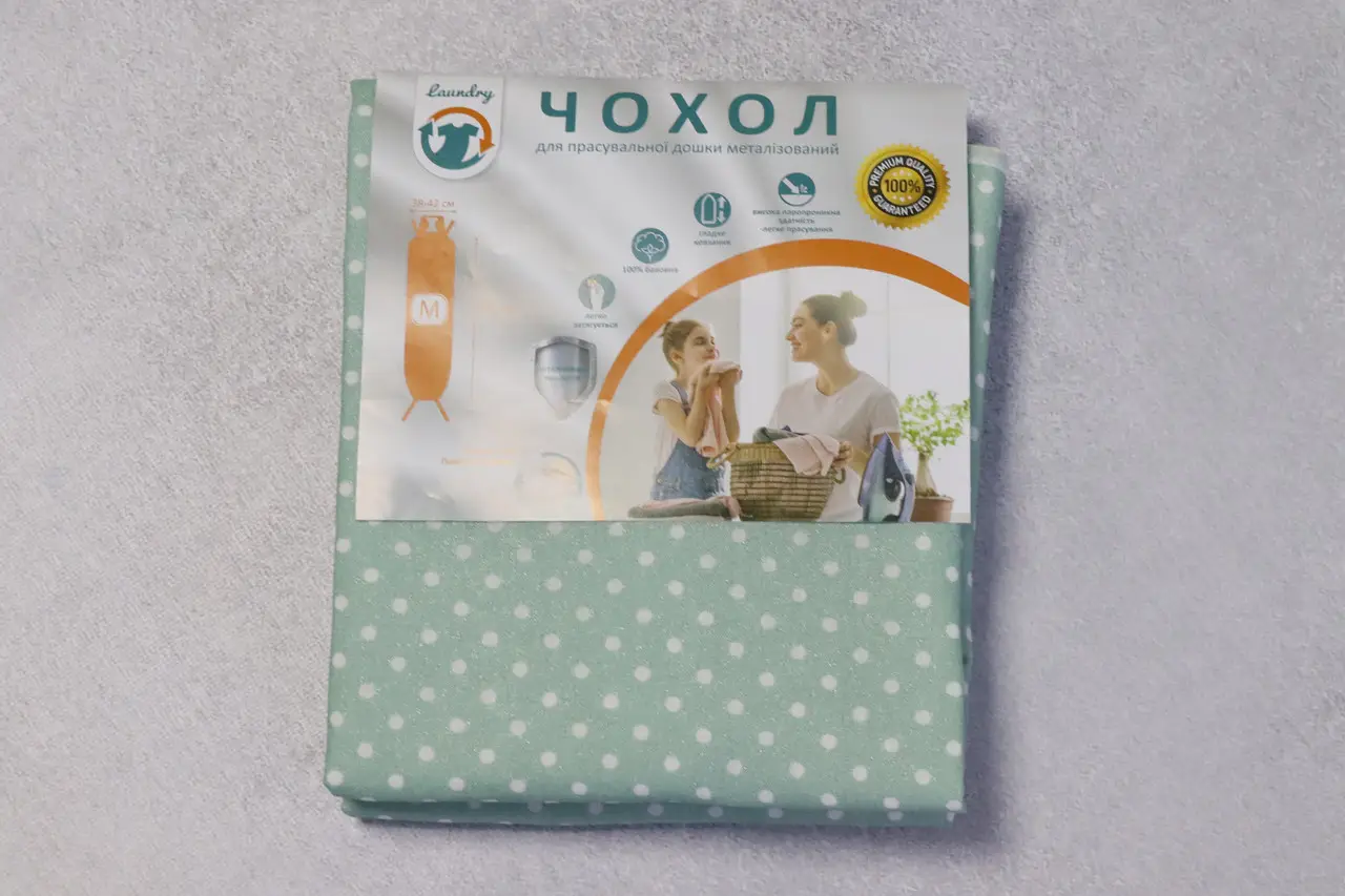 Сменный чехол на гладильную доску на войлочной подкладке. Подходит для доски размером длина 120 см, ширина 38-42 см. Толстая войлочная нескользящая подложка. Металлизированная ткать отражает тепло. Производитель - Турция.