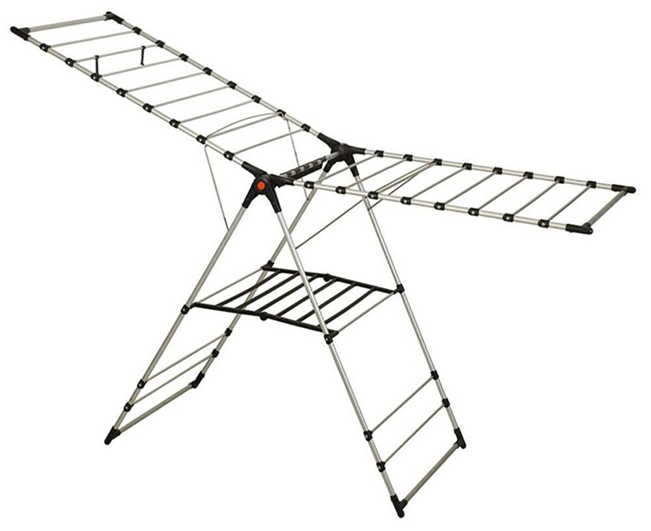 Компактная сушилка Harbinger Gold ММ037 решит проблему сушки одежды и белья без развешивания на веревках на улице или на балконе. Полезная длина сушилки эквивалентная длине бельевой веревки 20 метров, поэтому этого будет достаточно для белья после большой стирки. Изготовлена из жаростойкого алюминия, который также не подвержен коррозии, В комплекте есть пластиковые прищепки для носков и других мелких вещей. Конструкция состоит двух крыльев и поверхности между ножками. Имеет функцию предотвращения от самопроизвольного складывания и перекидывания сушилки. В разложенном виде длина составляет 191 см, а ширина составляет 63 см.