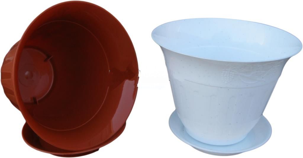 Цветочный горшок объёмом 4 л с подставкой имеет цвет как белого так и коричневого цвета, имеет декор в виде винограда. Цветочный горшок очень удобный, легкий и практичный, в горшке на дне нет дырок для стока воды, дырки можно проделать самим очень легко и быстро. Этот горшок подойдет к любому вашему цветку и в пишется в любой интерьер.