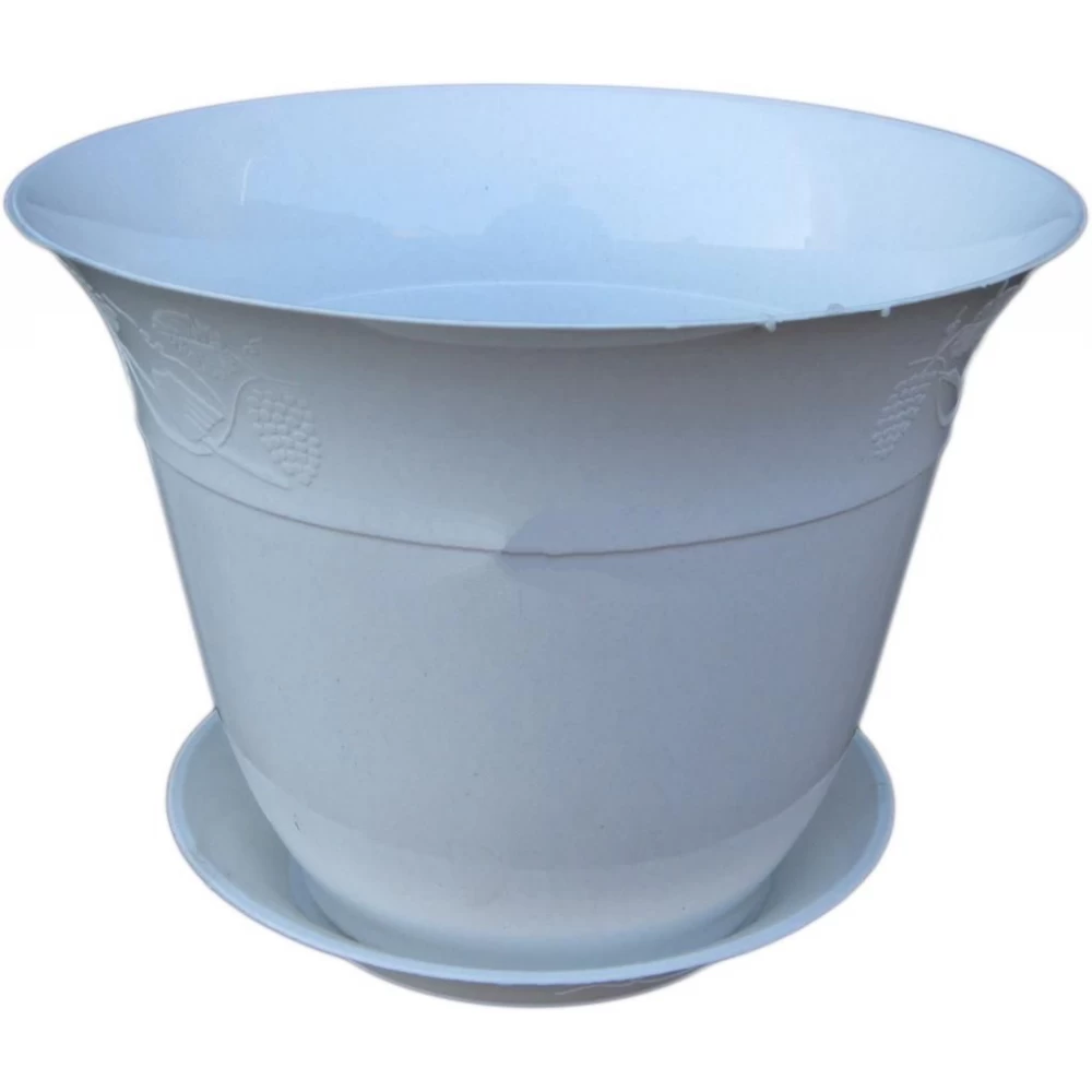 Цветочный горшок объёмом 7 л с подставкой белого цвета имеет декор в виде винограда. Цветочный горшок очень удобный, легкий и практичный в горшке на дне нет дырок для стока воды, дырки можно проделать самим очень легко и быстро. Этот горшок подойдет к любому вашему цветку и в пишется в любой интерьер.