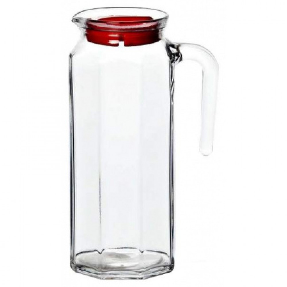 Призначення: для води та соку Матеріал: ударостійке скло Об'єм: 1 л Висота: 220 (мм) Діаметр горловини: 80 (мм) Діаметр дна: 90 (мм) Забарвлення: однотонне Основний колір: прозорий Наявність кришки Можливість використання в мікрохвильовій печі: так. Можливість миття в посудомийній машині: так.