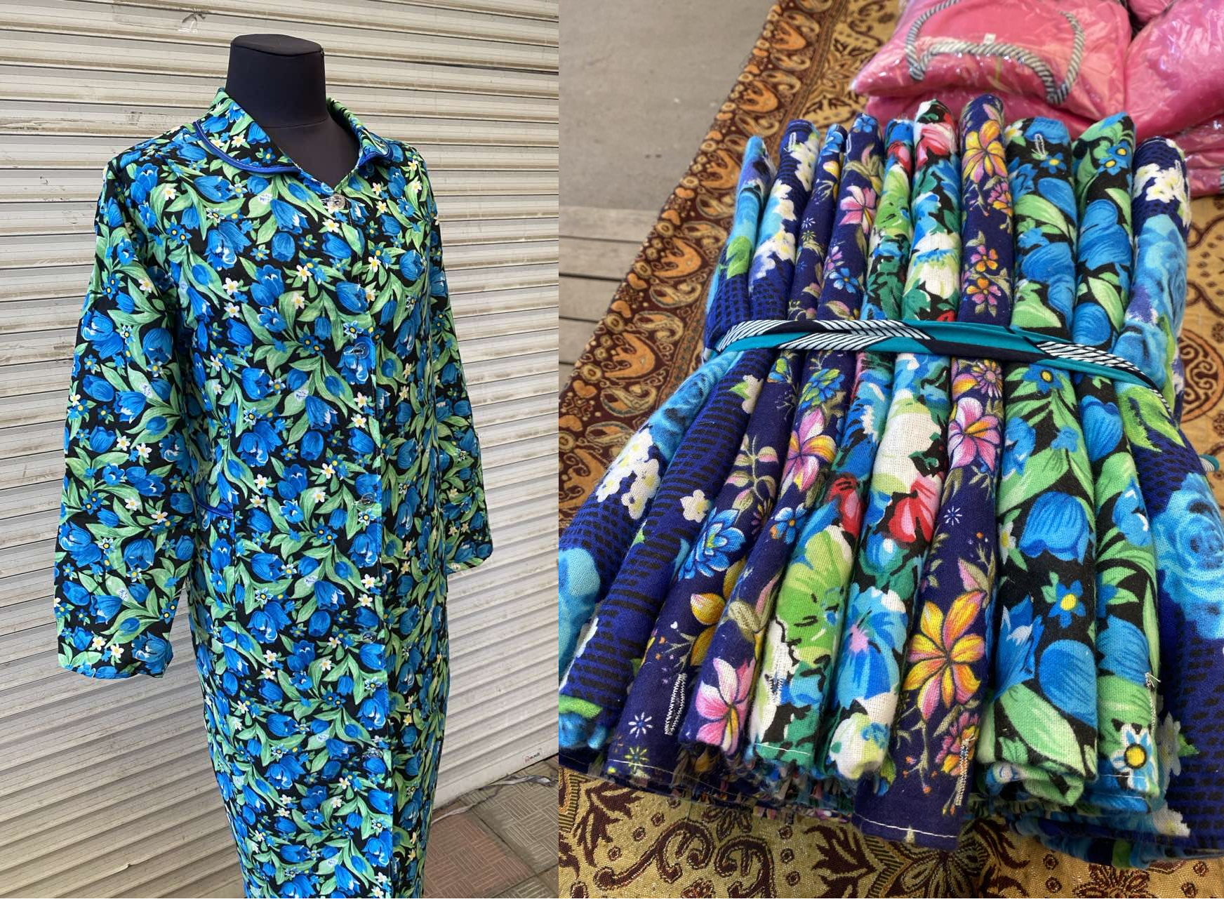 Халат байковый с карманами и воротником, с рукавом длинным и поясом Размер: 48-62